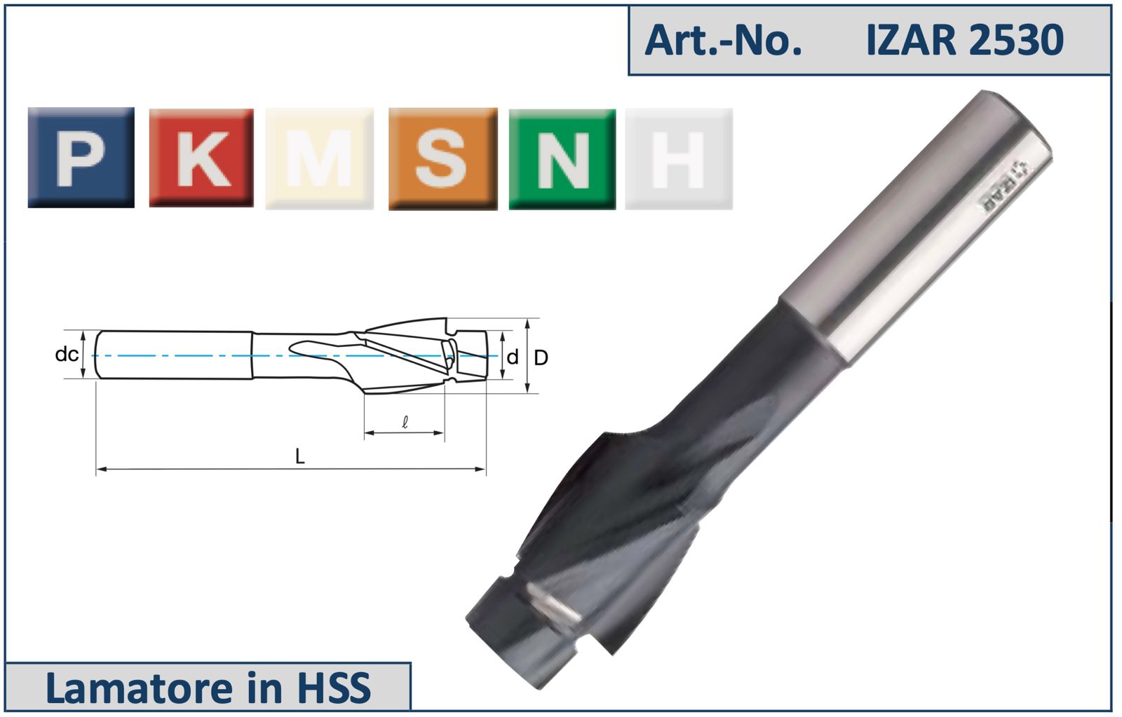 | Codice | Descrizione | Diametro Lavoro Maschio (DLM) | Diametro Attacco (dc) | Numero Taglienti (Z) | Lunghezza (L) | Tolleranza | Disp. | ||||||||||||||||