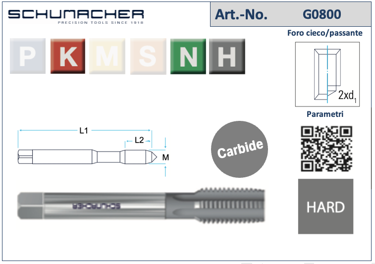 | 12348882 | VQCM0508025 MASCHIO M5/0,8 6H | M5x0.80 | Foro Cieco | M5x0.80 | 6H | TiCN | 2.5 | 15 | 70 | ||||||||||||||