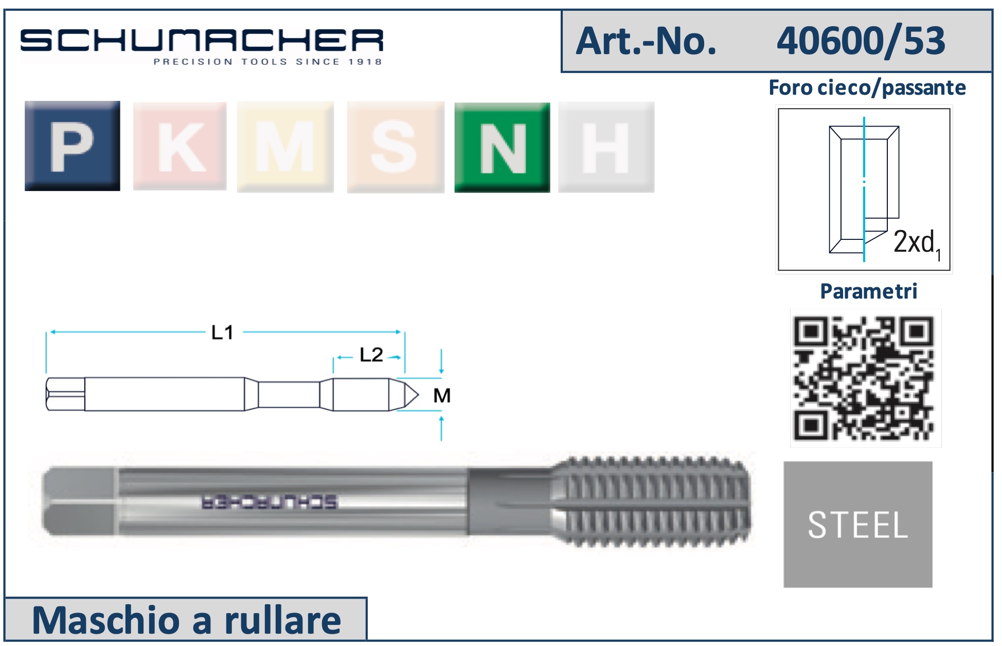 | 61396175 | M2.5X0.45-NO.3-6H-0° (10300) A MANO ACCIAIO-IMB.C MASCHIO N/R | M2.5x0.45 | A Mano | M2.5x0.45 | No.3-6H | Non Ricoperto | C | 9 | 40 | ||||||||||||||