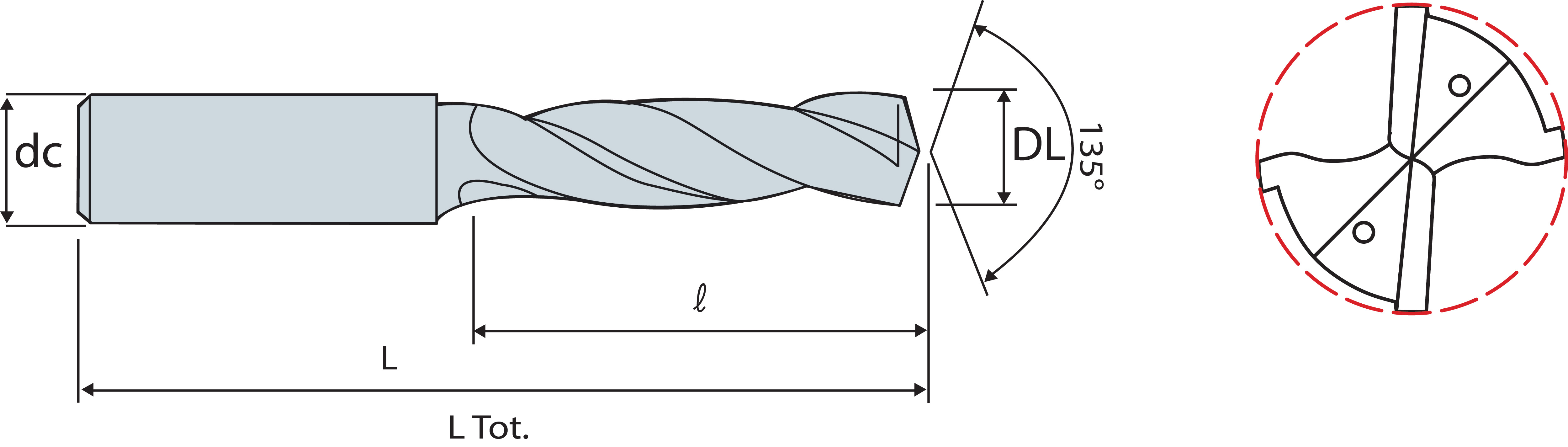 | Codice | Descrizione | Diametro Lavoro (DL) | Lunghezza Utile (l) | Diametro Attacco (dc) | Lunghezza (L) | Con/Senza Fori | Tolleranza | Angolo/Elica° | Disp. | ||||||||||||||