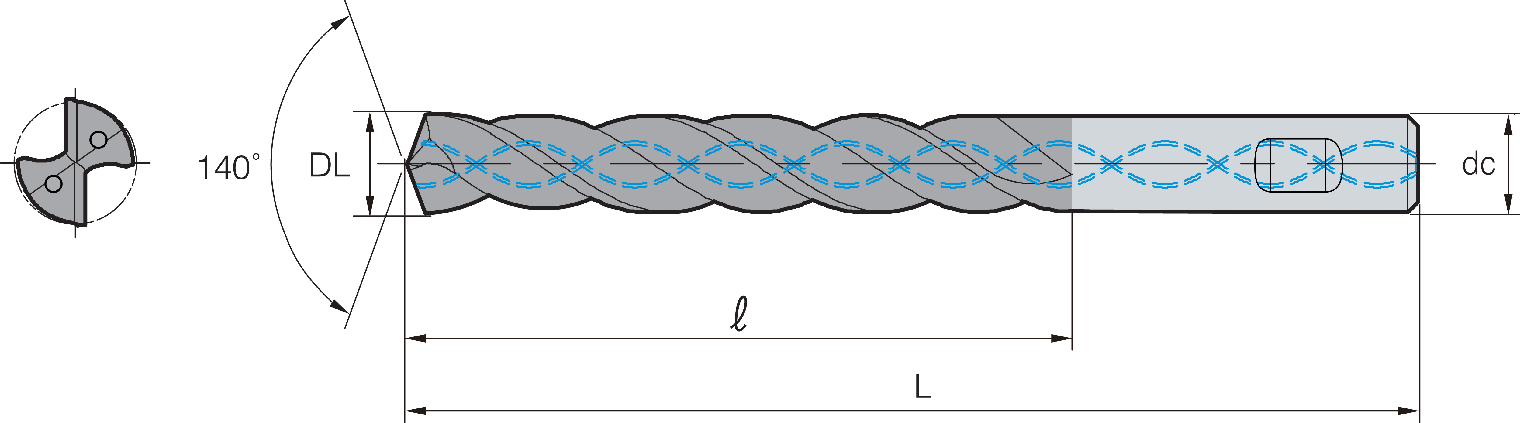 | Codice | Descrizione | Diametro Lavoro (DL) | Lunghezza Utile (l) | Diametro Attacco (dc) | Lunghezza (L) | Con/Senza Fori | Tolleranza | Angolo/Elica° | Disp. | ||||||||||||||