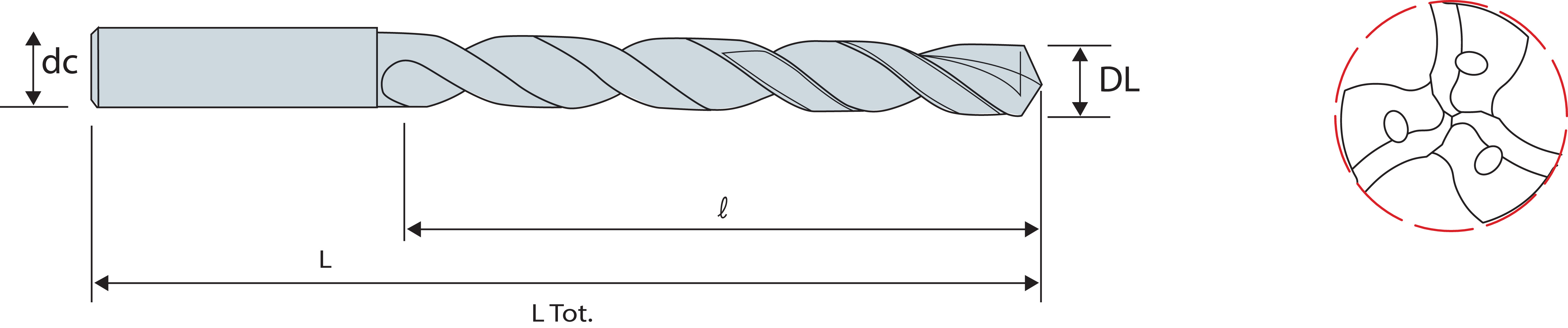 Codice | Descrizione | Diametro Lavoro (DL) | Lunghezza Utile (l) | Diametro Attacco (dc) | Lunghezza (L) | Con/Senza Fori | Tolleranza | Angolo/Elica° | Disp. | ||||||||||||||