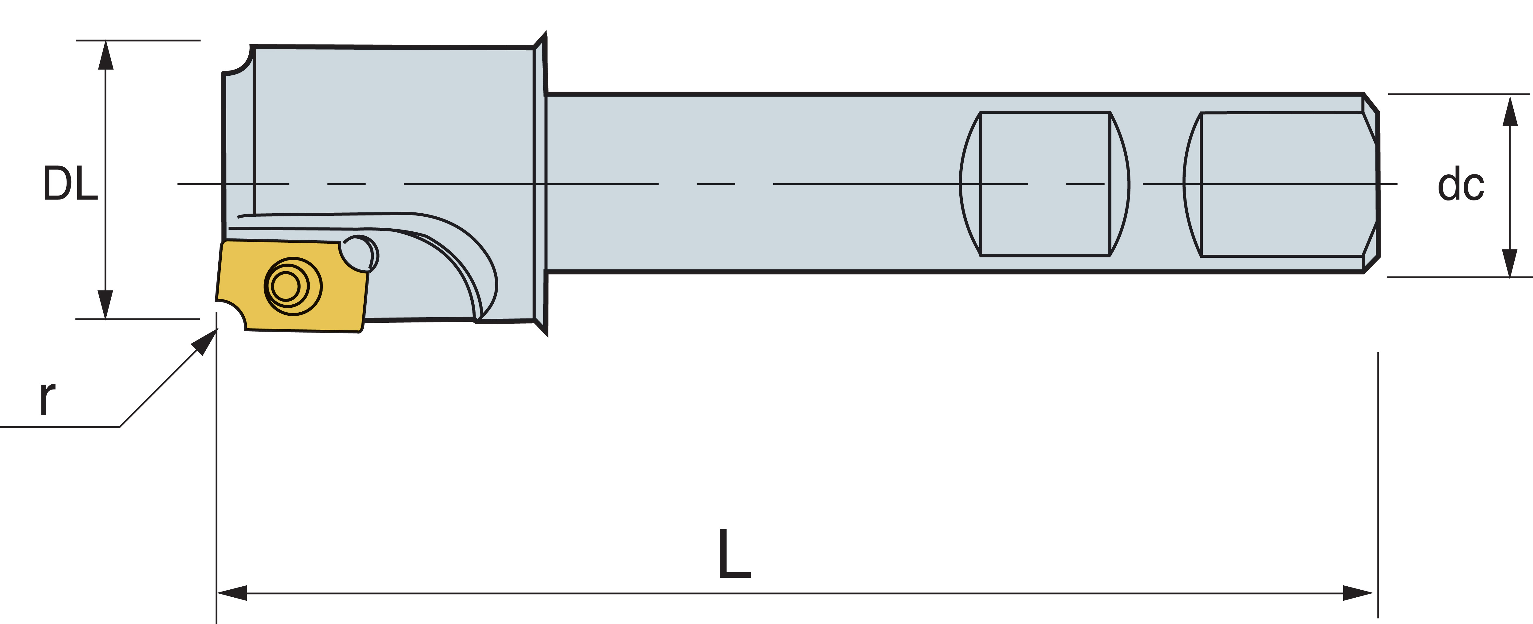 | Codice | Descrizione | Diametro Lavoro (DL) | Numero Taglienti (Z) | Raggio | Diametro Attacco (dc) | Lunghezza (L) | Disp. | ||||||||||||||||