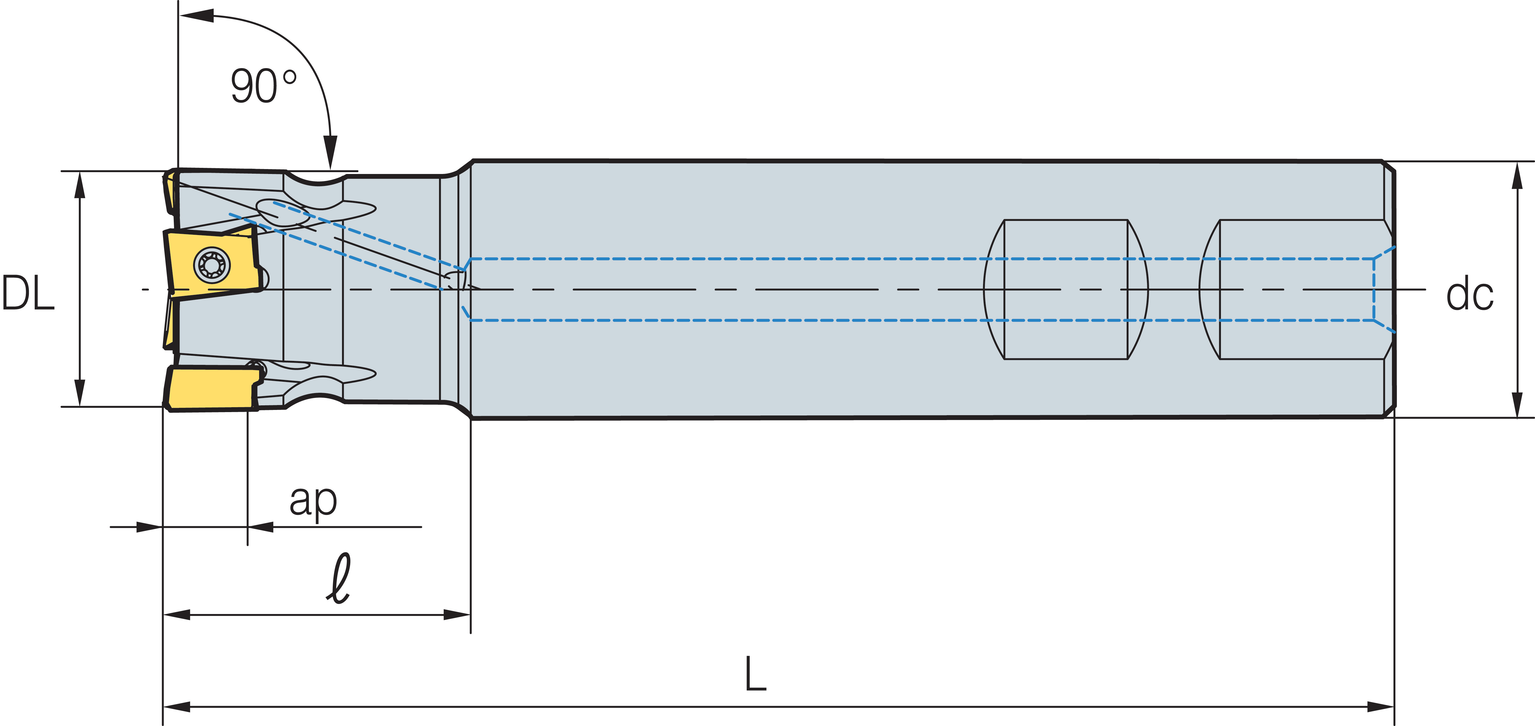 | Codice | Descrizione | Diametro Lavoro (DL) | Numero Taglienti (Z) | Diametro Attacco (dc) | Diametro Attacco a Manicotto (dm) | Lunghezza Utile (l) | Lunghezza (L) | Profondita' di Passata (ap) | Altezza (H) | Disp. | |||||||||||||
