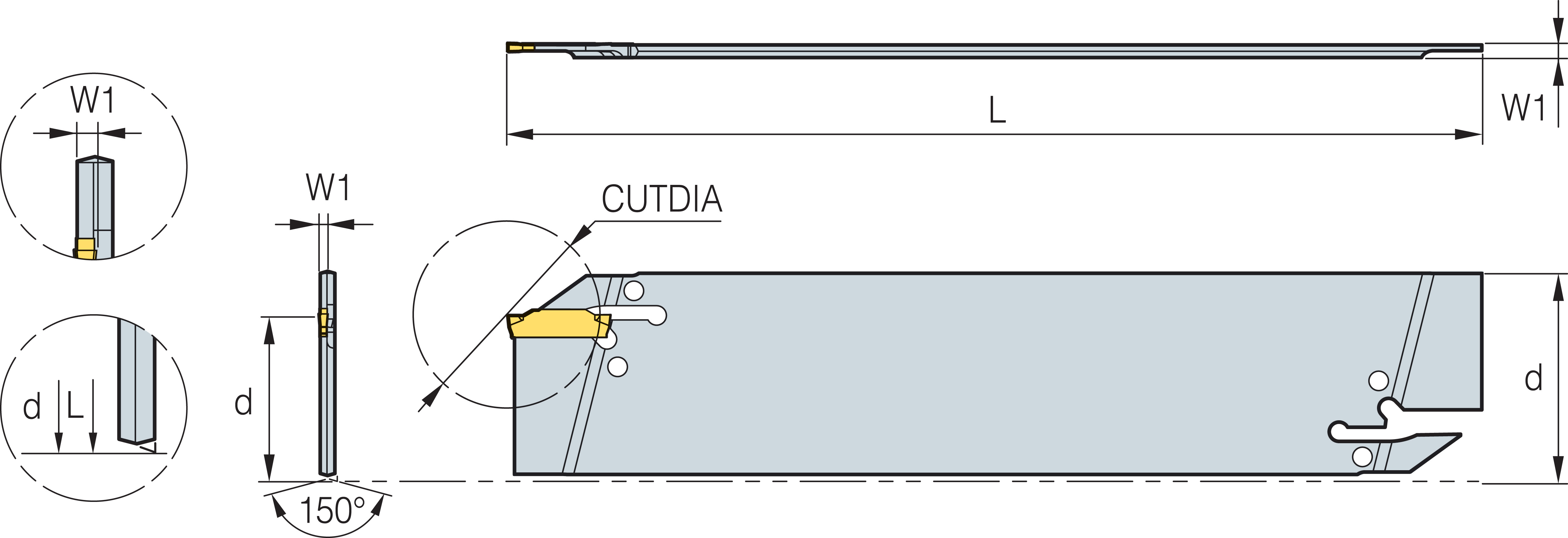 | Codice | Descrizione | Lunghezza (L) | Altezza (H) | Spessore di Lavoro (W) | Altezza (h1) | T-MAX | Disp. | ||||||||||||||||